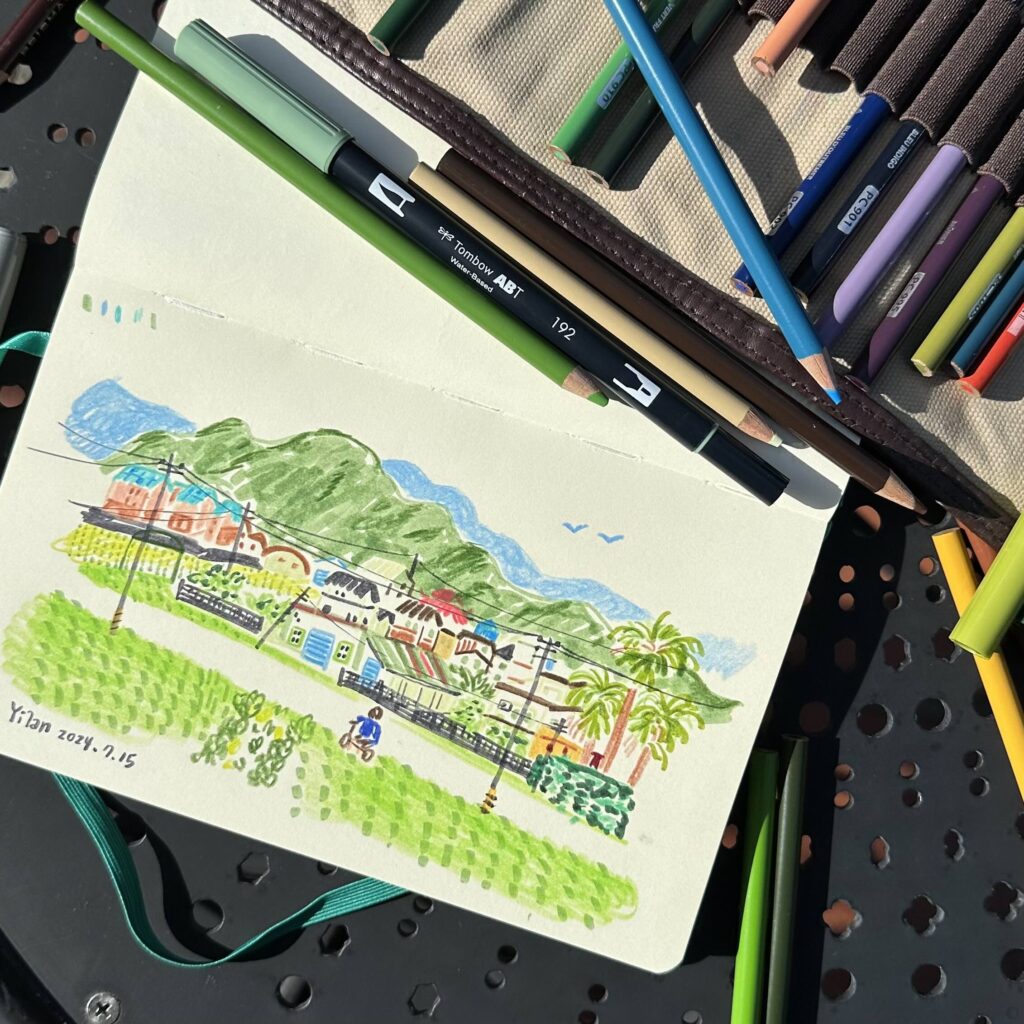 我的速寫創作主要都是用這組色鉛筆,它的顏色飽和,可以畫出鮮艷明亮的作品,推薦給喜歡創作童趣可愛畫風的繪者